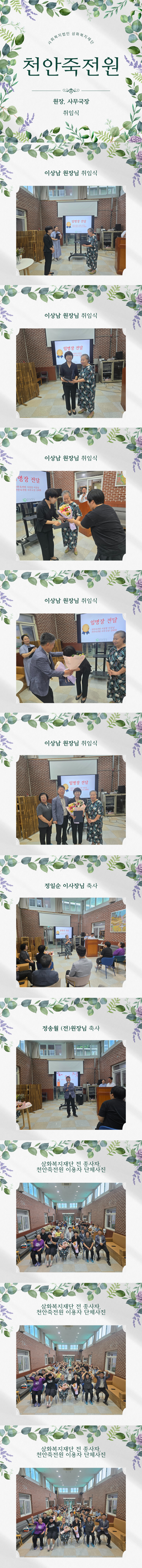 [7월] 이상남 원장님 취임식 페이지 정보 작성자 운영자 작성일25-07-02 16:55 조회669회 댓글0건 관련링크 목록 본문 [7월] 07월 01일(화) 이상남 원장님 취임식 진행하였습니다.삼화복지재단 종사자분들과 천안죽전원 이용자분들께서 힘찬 응원과 박수로 삼화복지재단 천안죽전원의 관리자분들을 축하해주셨습니다.이상남 원장님의 취임을 진심으로 축하드립니다. 댓글목록 등록된 댓글이 없습니다. 목록