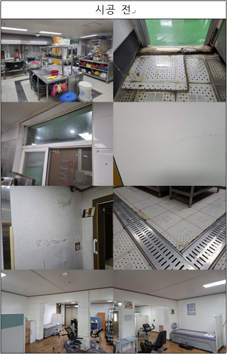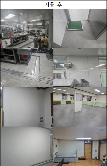 천안죽전원 주방, 식당, 치료실, 원 내 벽면 보수공사 및 페인트 작업을 진행하였습니다.