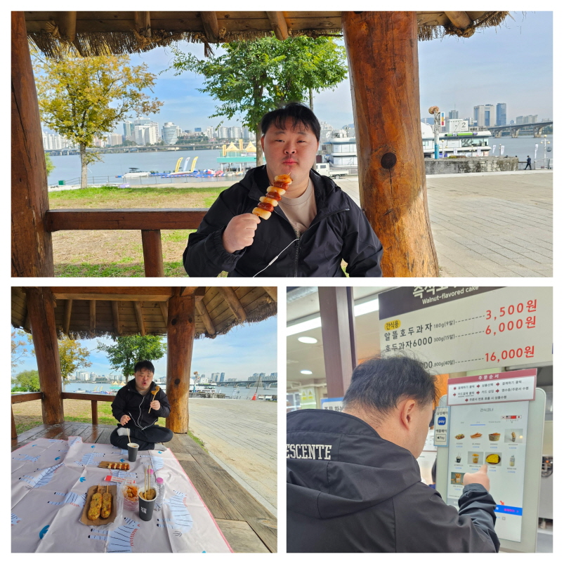 평소 “한강에서 피크닉을 하고 싶어요”라는 유*재 이용인의 소원을 담아, 서울로 향하는 길목의 휴게소에 들러 점심 메뉴를 직접 골라 포장하고 한강 공원에 도착해 맛있는 도시락을 들고 한강의 정자에 앉아 가을 바람을 느끼며 여유롭게 식사 시간을 즐겼습니다.