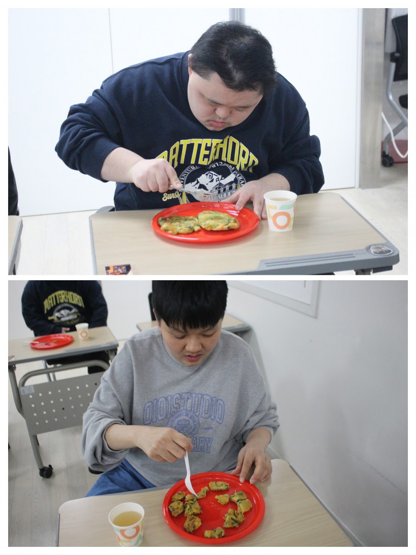 마침내 완성된 ‘봄동 바지락전’은 보기만 해도 먹음직스러웠고, 직접 만든 음식이라 그런지 더욱 특별한 맛이었습니다. 함께 만들어 더 즐겁고, 함께 먹어 더 따뜻했던 하루. 장을 보고, 요리하고, 나누며 또 하나의 소중한 추억을 쌓았습니다.